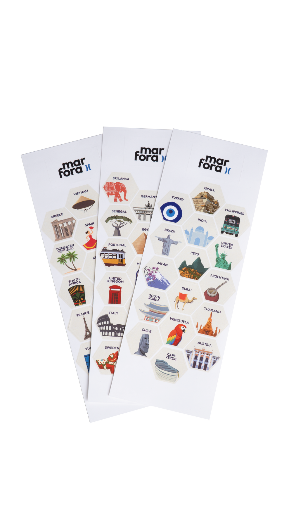 * Kit coleccionable: recibe 2 sets de 50 pegatinas de países a prueba de agua para iniciar tu colección.